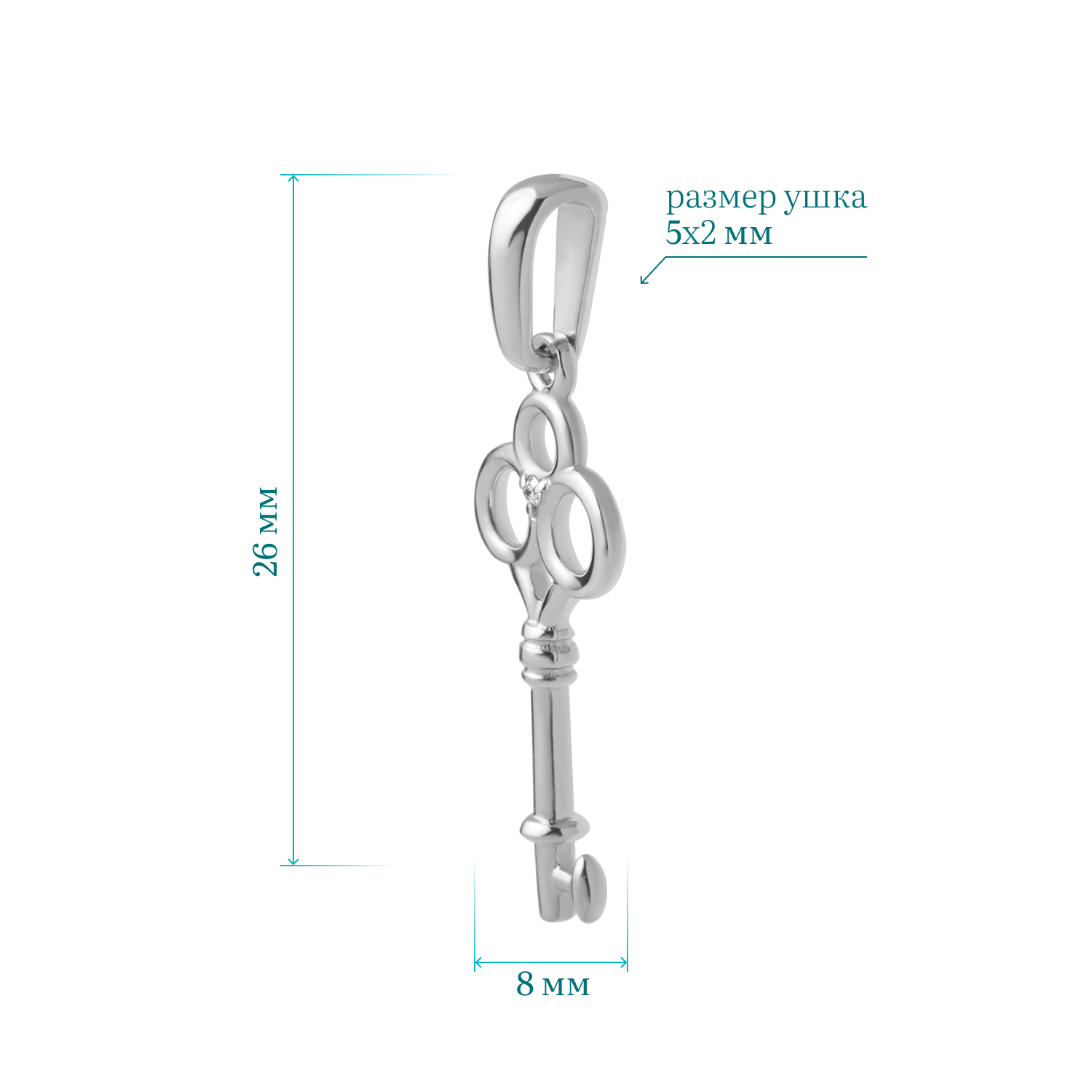 Описание: Изящная подвеска в форме ключа – символ открытых дверей и новых возможностей. Изготовленная из благородного белого золота 585 пробы, она олицетворяет не только высокий статус, но и незримую магию, заключенную в каждом изгибе. Каждая деталь изделия выполнена с тончайшим мастерством. Качество исполнения вызывает восхищение: даже самый мелкий элемент тщательно проработан, чтобы передать ощущение роскоши и надежности. Ключ призывает носителя к смелым шагам в неизведанные миры. Подвеска становится не просто украшением, но и путеводителем, который напоминает о том, что каждая запертая дверь способна открыть новые пути, полные чудес. Именно такой талисман в Древней Руси был одним из подарков на свадьбу молодоженам, ведь известно, что к дверям от счастливой жизни должен быть свой ключ. Подвеска из белого золота в виде ключа универсальна – она стильная и оригинальная. Такое украшение станет символическим подарком для вашей подруги, девушки, жены или невестки.
