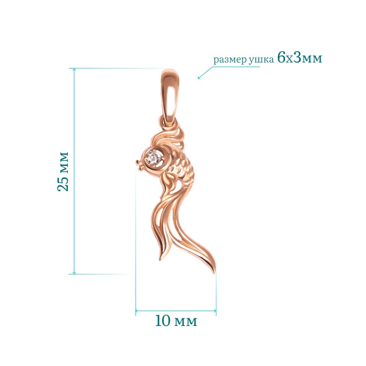 Описание: Подвеска “Золотая рыбка” с бриллиантовой вставкой – украшение, способное превратить образ в нечто сказочное и волшебное. Золотая рыбка считается символом осуществления всех желаний. Поэтому это идеальный подарок для любимой женщины – мамы, жены или дочери. Она не только помогает достичь успеха в финансовых делах, но и очищает мысли от негативных переживаний, наделяя обладателя упорством в решении важных дел. Согласно фэн-шуй, рыбы считаются символом богатства и исполнения желаний. Купите любимому человеку драгоценный подарок, который демонстрирует ваше внимание, любовь и заботу.